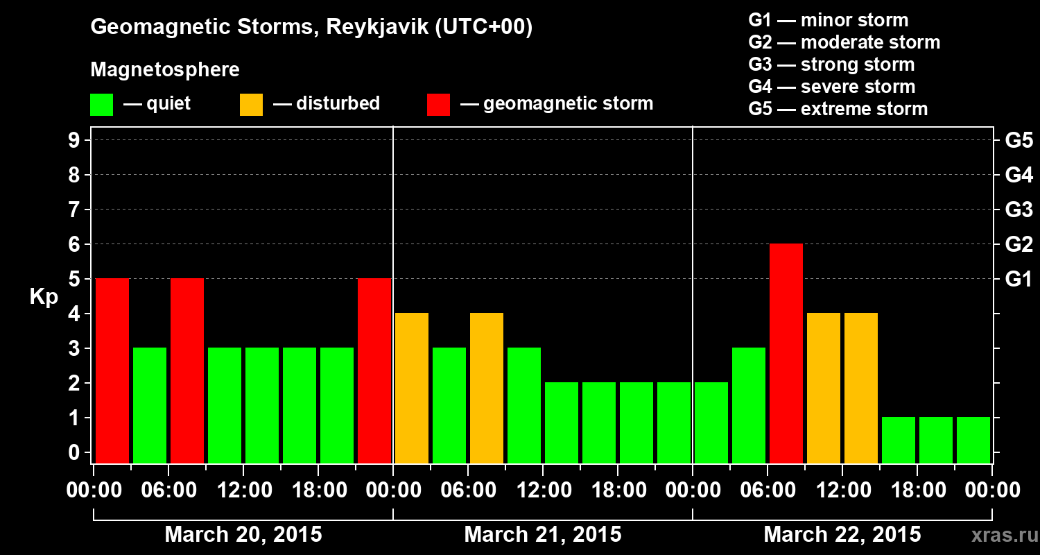 Geomagnetic storms in Reykjavik on Mar 22, 2015