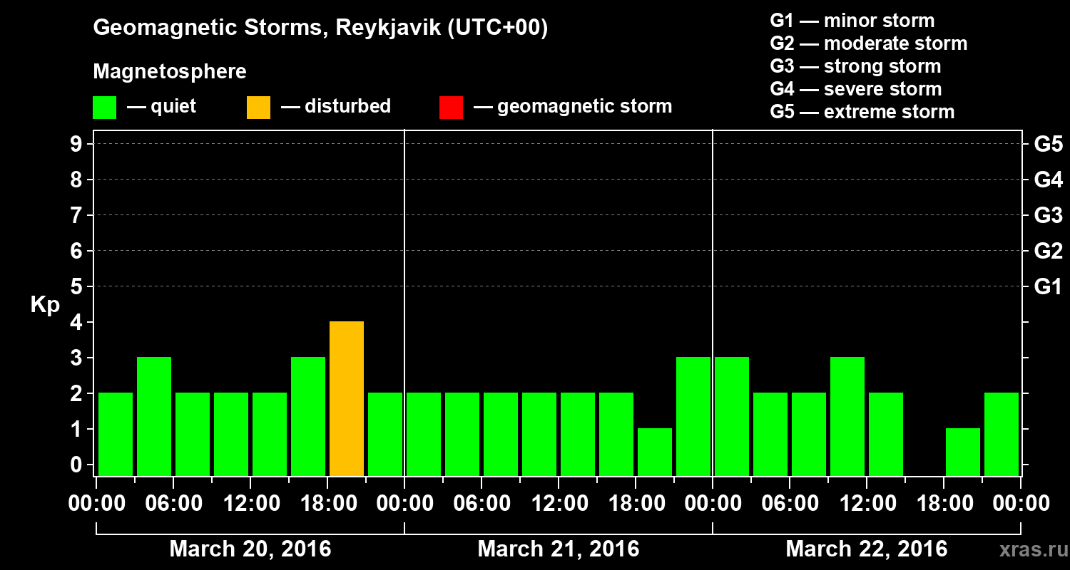 Geomagnetic storms in Reykjavik on Mar 22, 2016