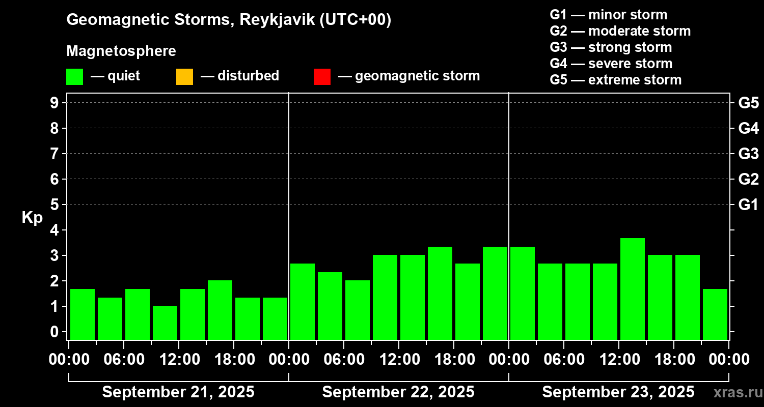 Geomagnetic storms in Reykjavik — Sep 23, 2025