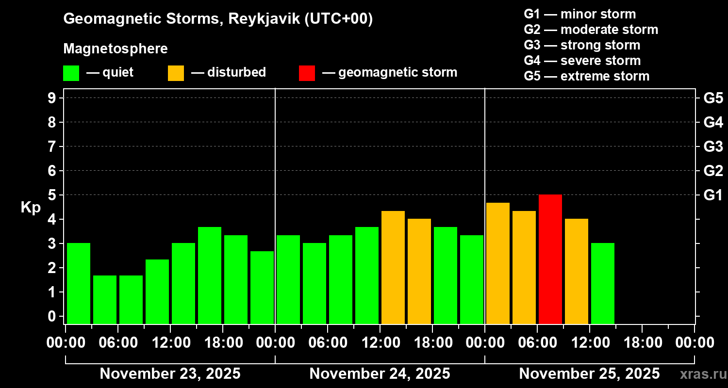 Geomagnetic storms in Reykjavik — Nov 25, 2025