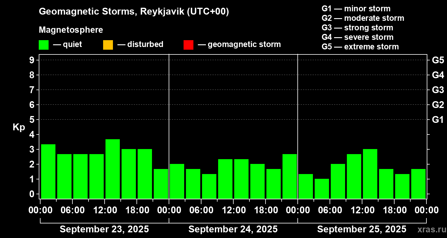 Geomagnetic storms in Reykjavik — Sep 25, 2025