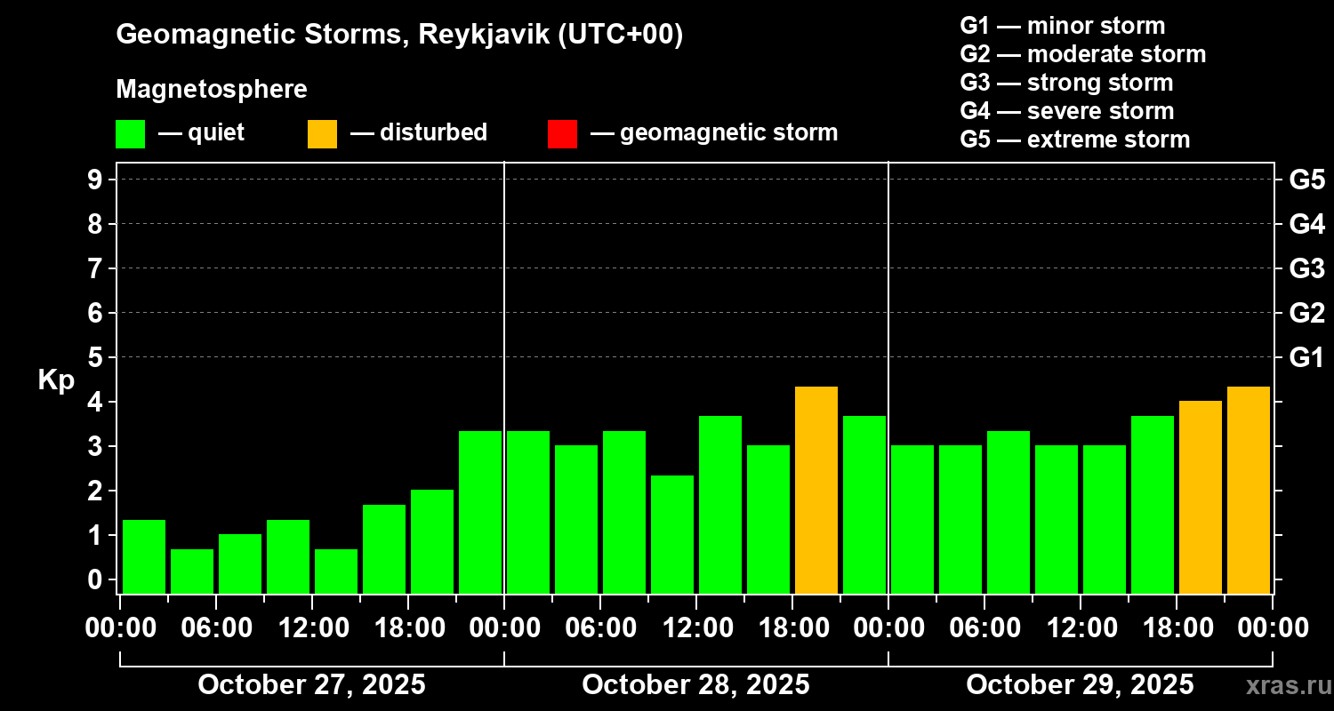 Geomagnetic storms in Reykjavik — Oct 29, 2025