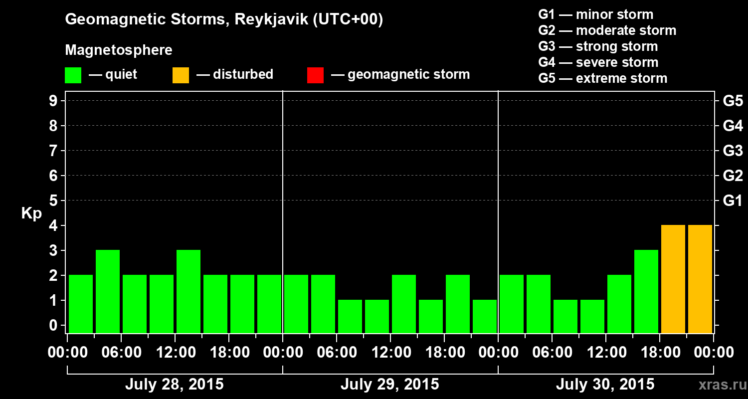Geomagnetic storms in Reykjavik — Jul 30, 2015