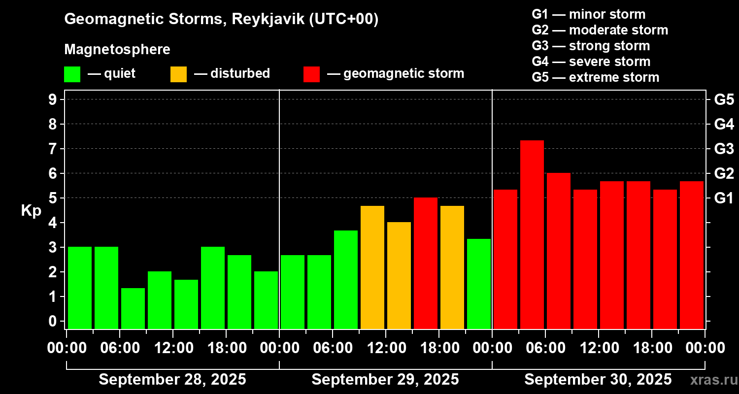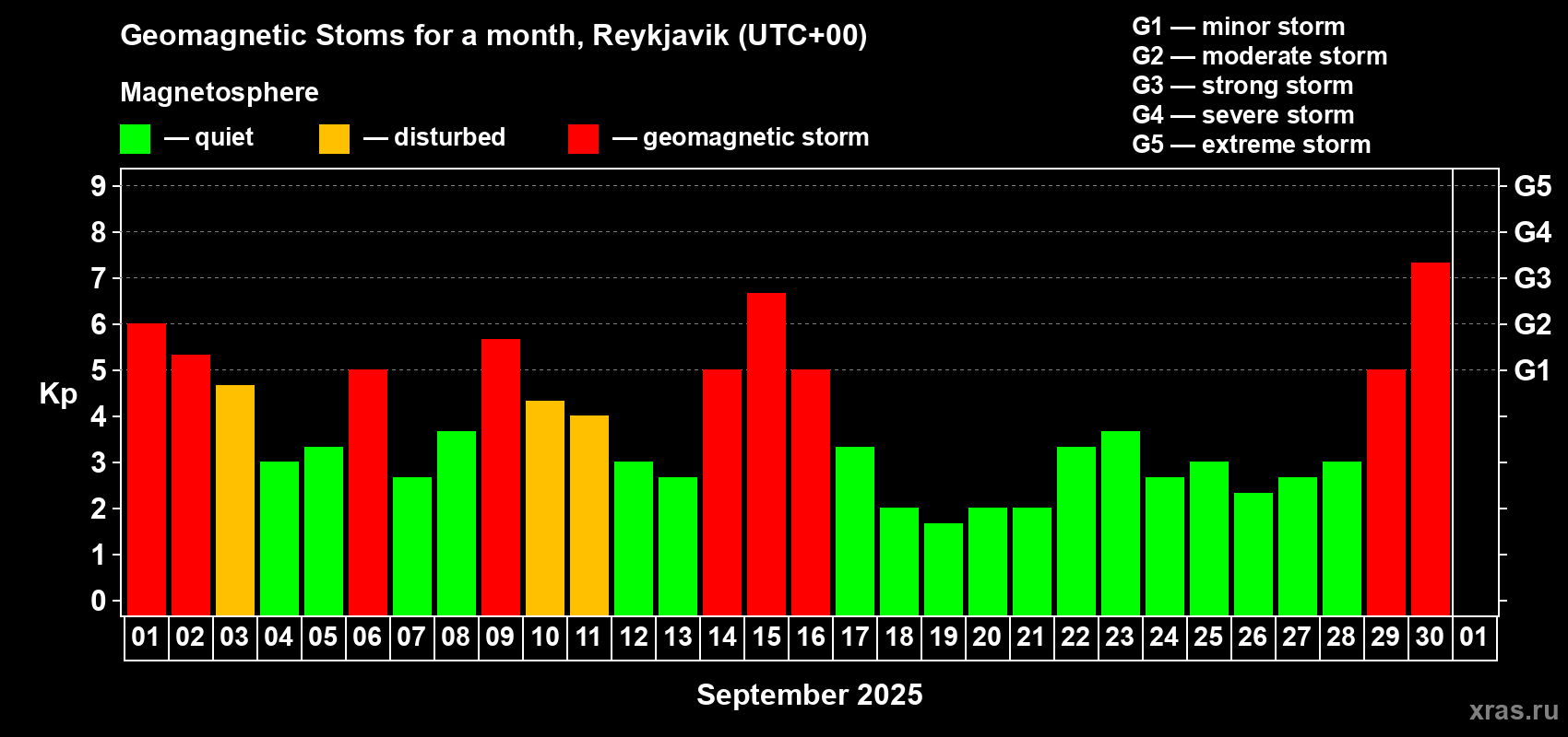 Geomagnetic storms in Reykjavik — Sep 30, 2025