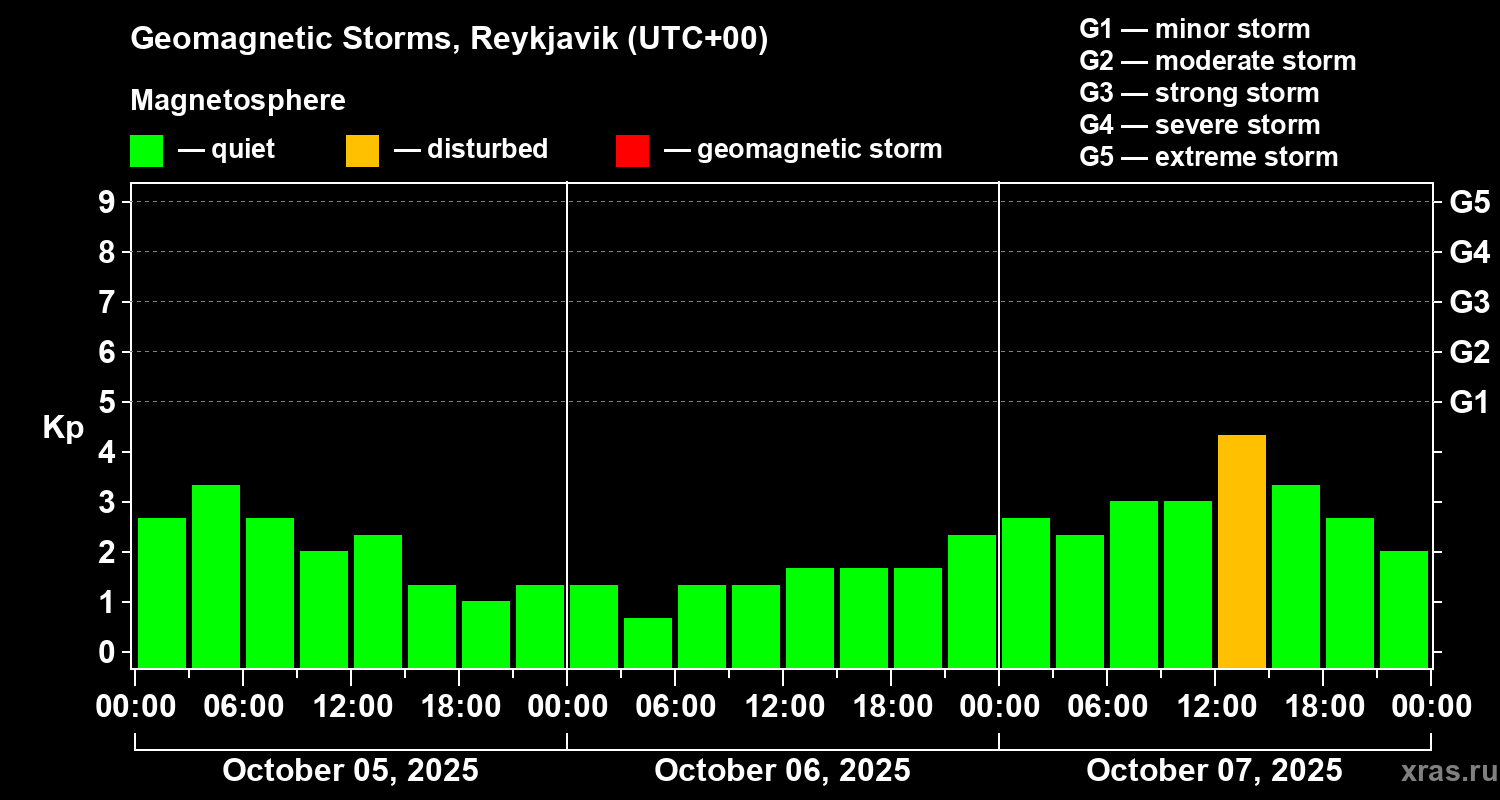Geomagnetic storms in Reykjavik — Oct 07, 2025