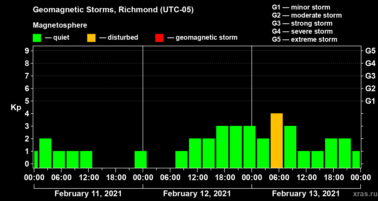 Geomagnetic storms in Richmond on Feb 13, 2021
