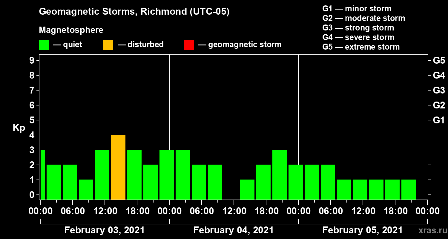 Geomagnetic storms in Richmond on Feb 05, 2021