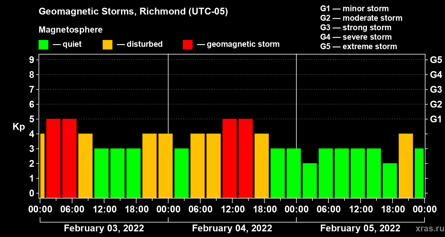 Geomagnetic storms in Richmond on Feb 05, 2022
