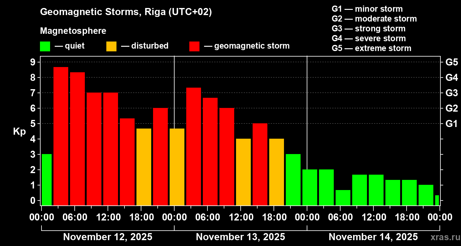Geomagnetic storms in Riga — Nov 14, 2025