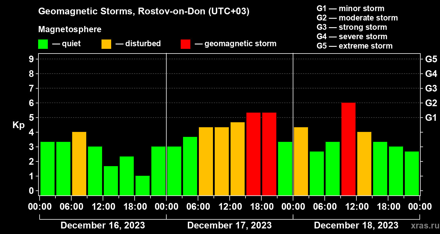 Geomagnetic storms in Rostov-on-Don in December 2023