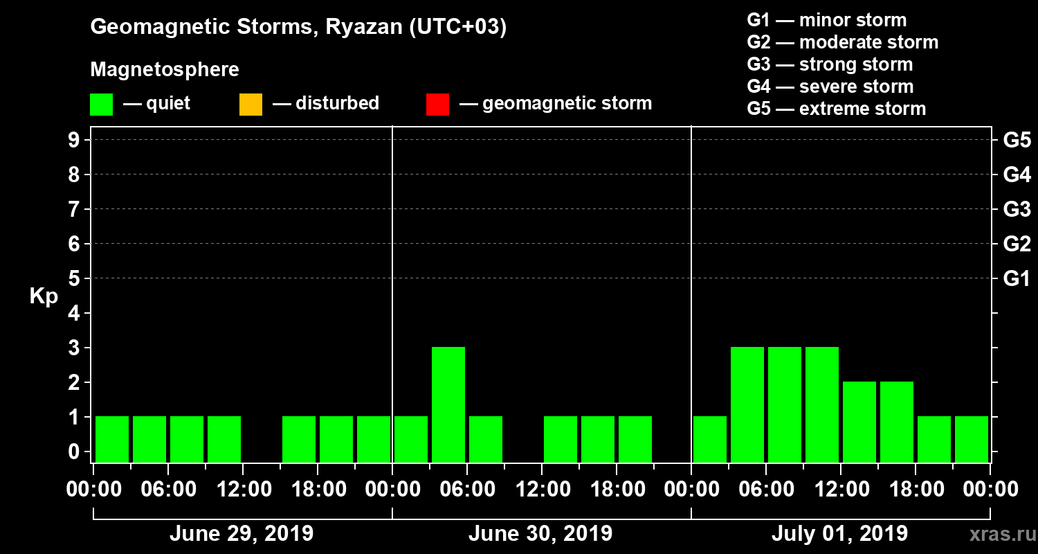 Geomagnetic storms in Ryazan on Jul 01, 2019