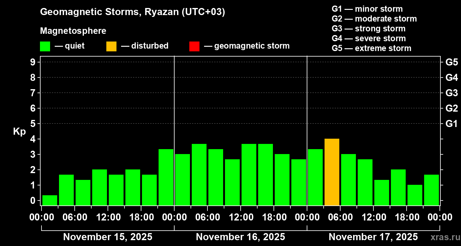 Geomagnetic storms in Ryazan on Nov 17, 2025