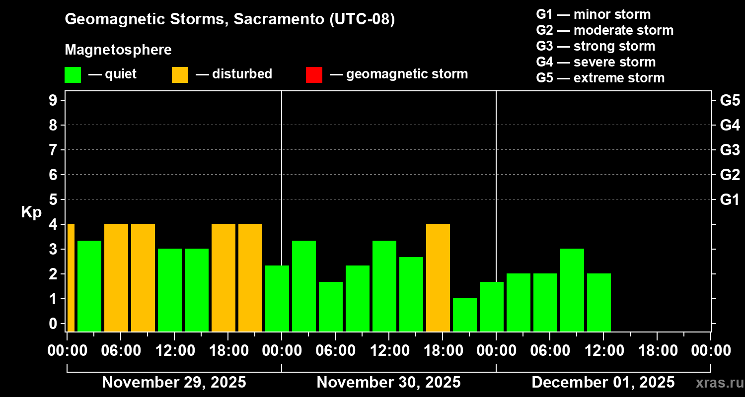 Geomagnetic storms in Sacramento — Dec 01, 2025