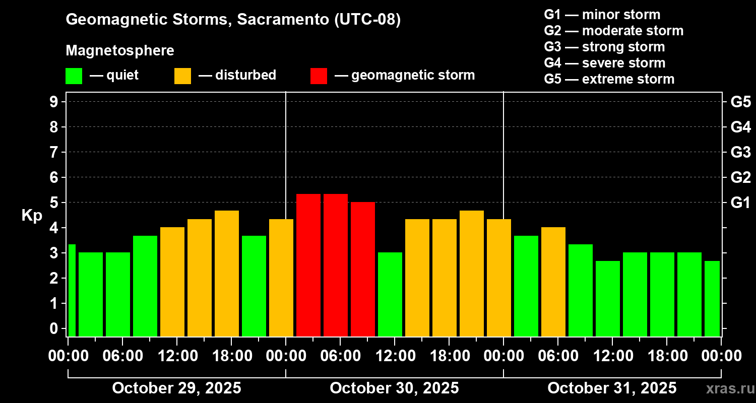 Geomagnetic storms in Sacramento — Oct 31, 2025