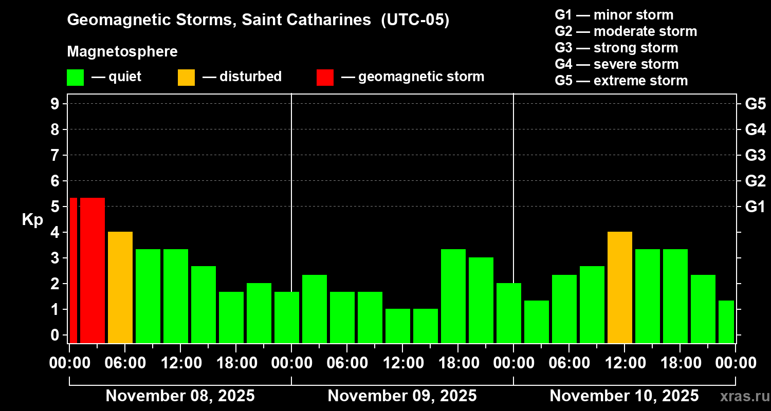 Geomagnetic storms in Saint Catharines — Nov 10, 2025