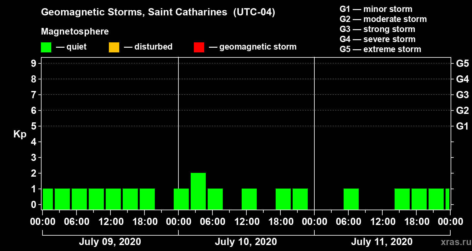 Geomagnetic storms in Saint Catharines in July 2020