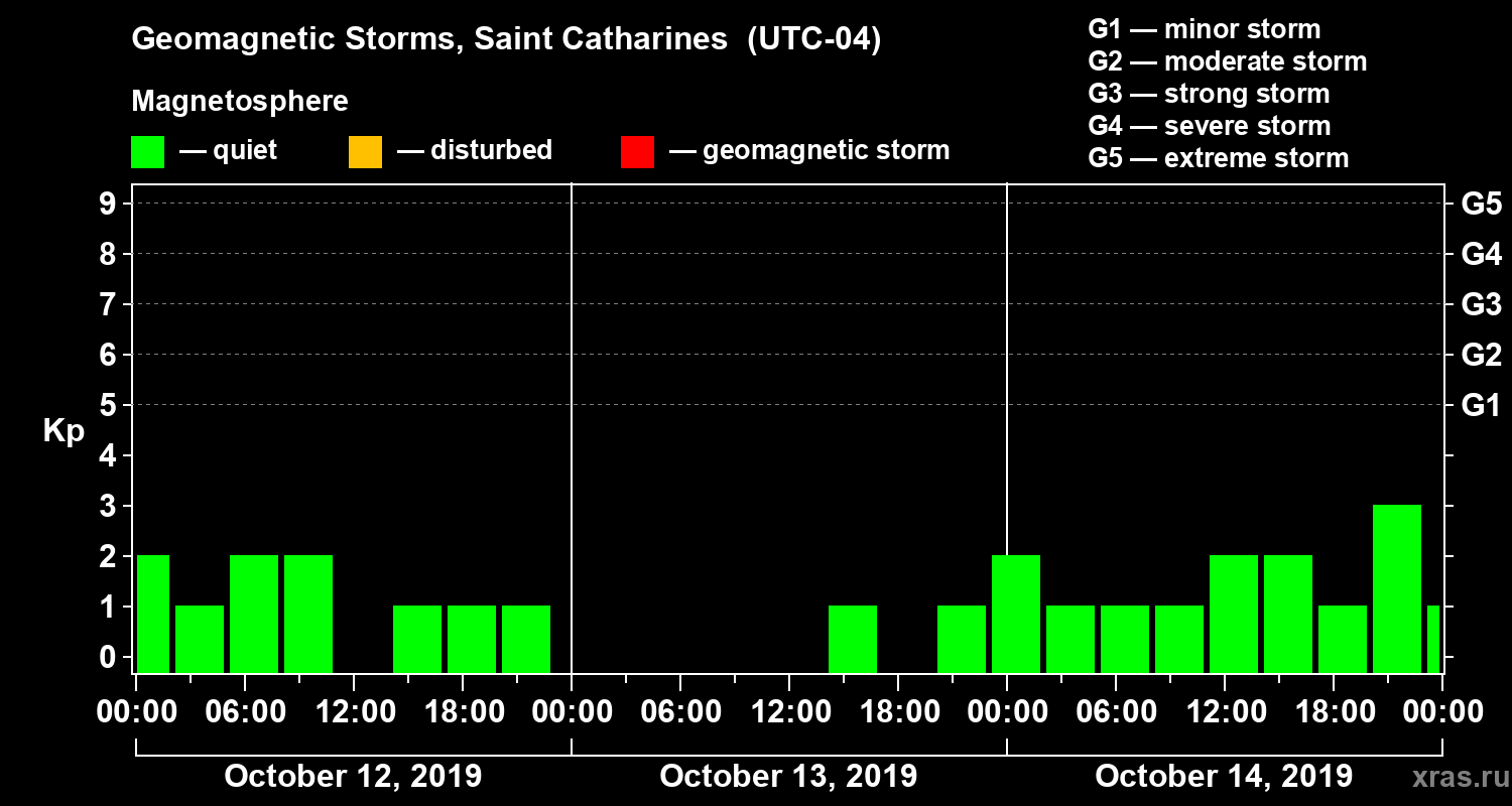 Geomagnetic storms in Saint Catharines on Oct 14, 2019