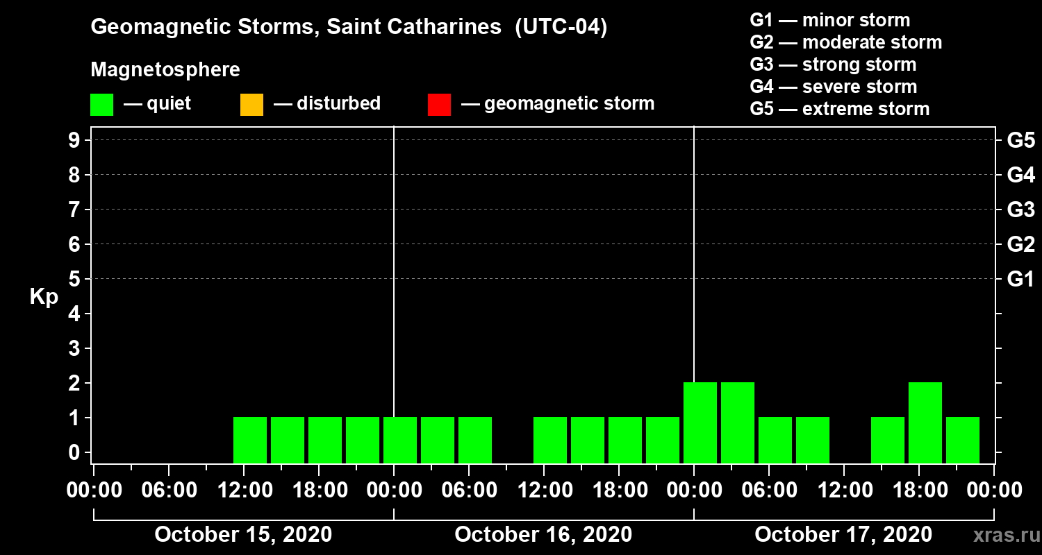 Geomagnetic storms in Saint Catharines on Oct 17, 2020