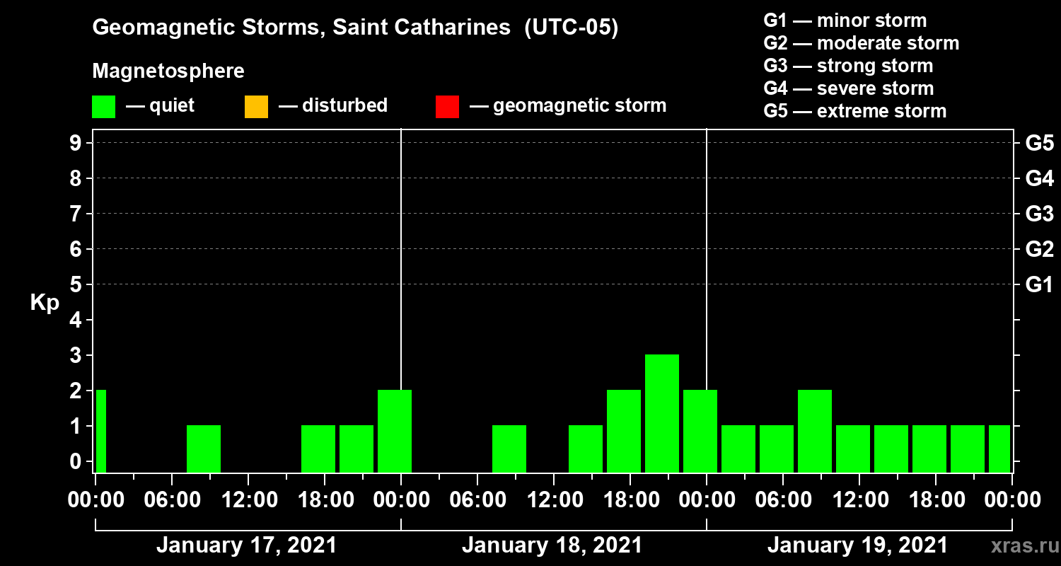 Geomagnetic storms in Saint Catharines — Jan 19, 2021