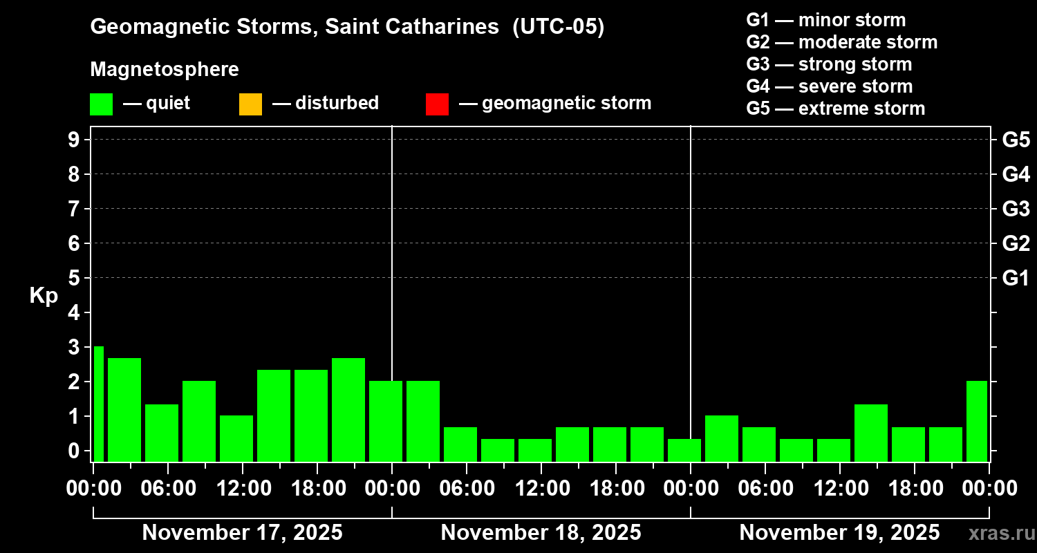 Geomagnetic storms in Saint Catharines — Nov 19, 2025