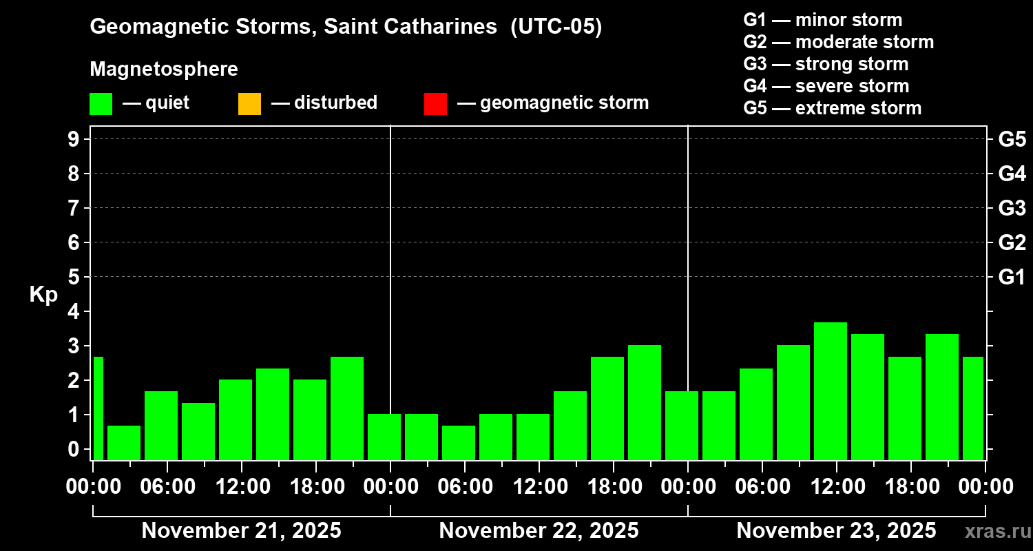 Geomagnetic storms in Saint Catharines — Nov 23, 2025