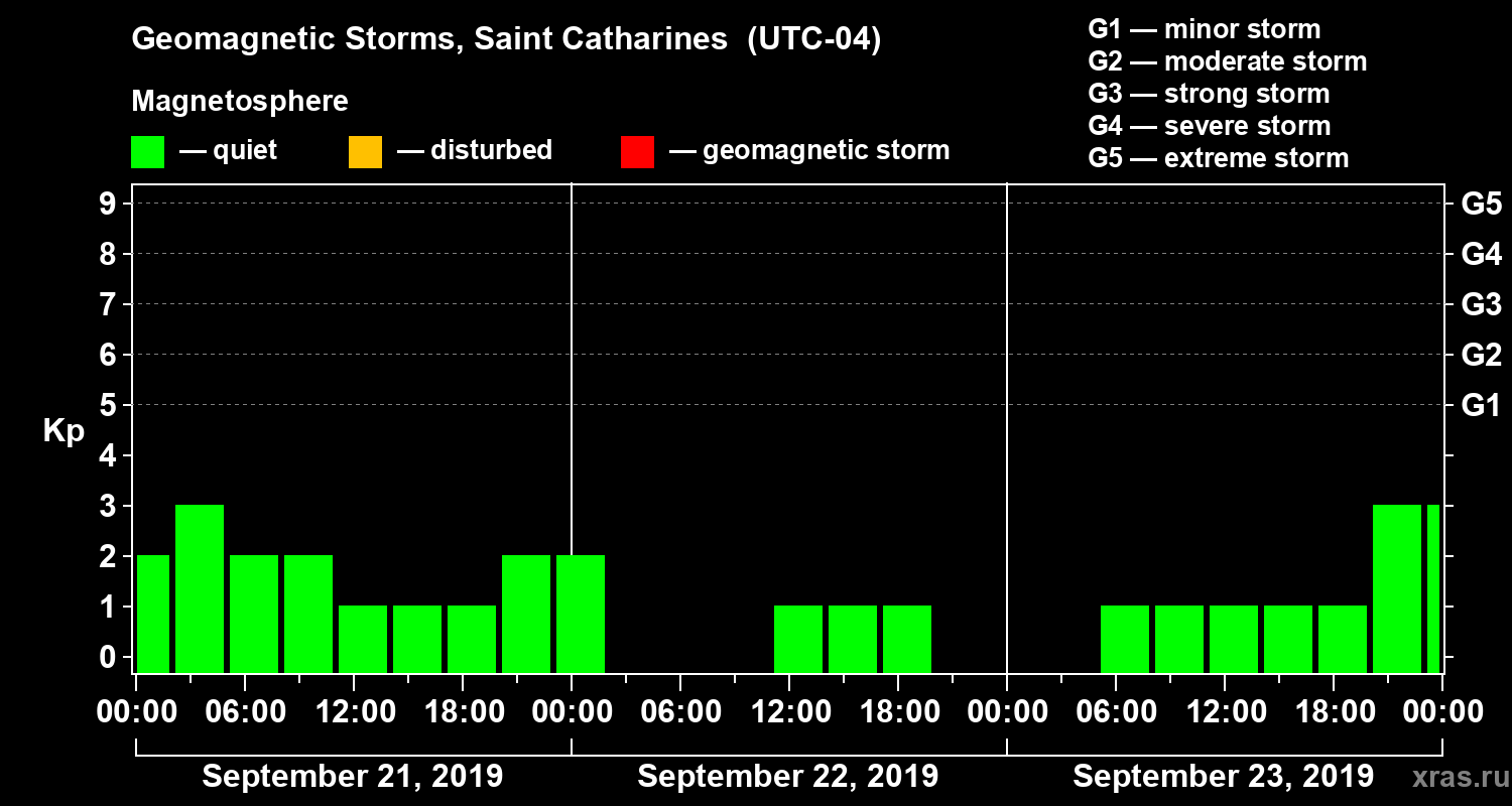 Geomagnetic storms in Saint Catharines in September 2019