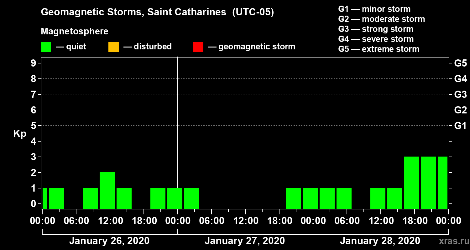 Geomagnetic storms in Saint Catharines in January 2020