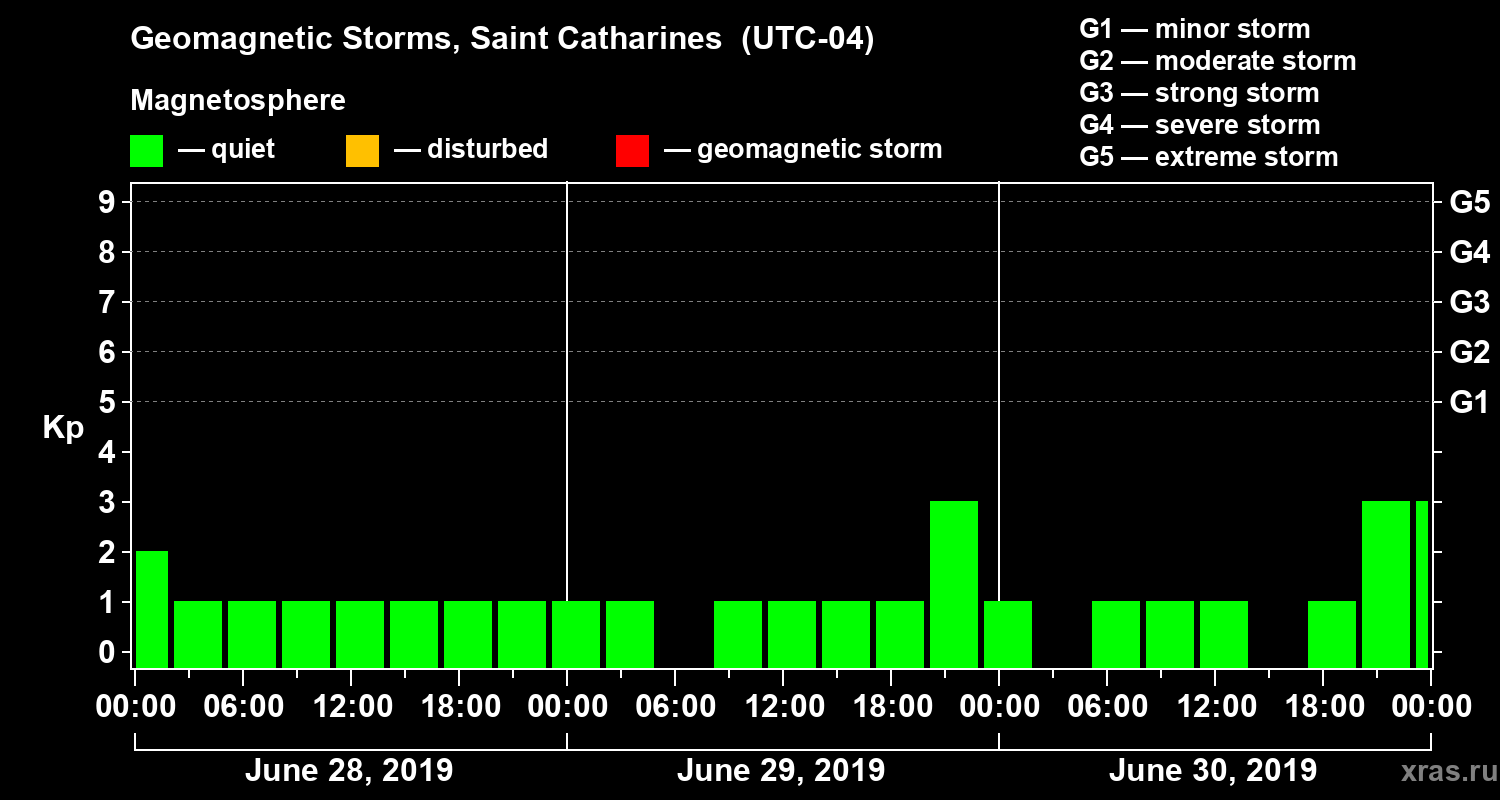 Geomagnetic storms in Saint Catharines — Jun 30, 2019