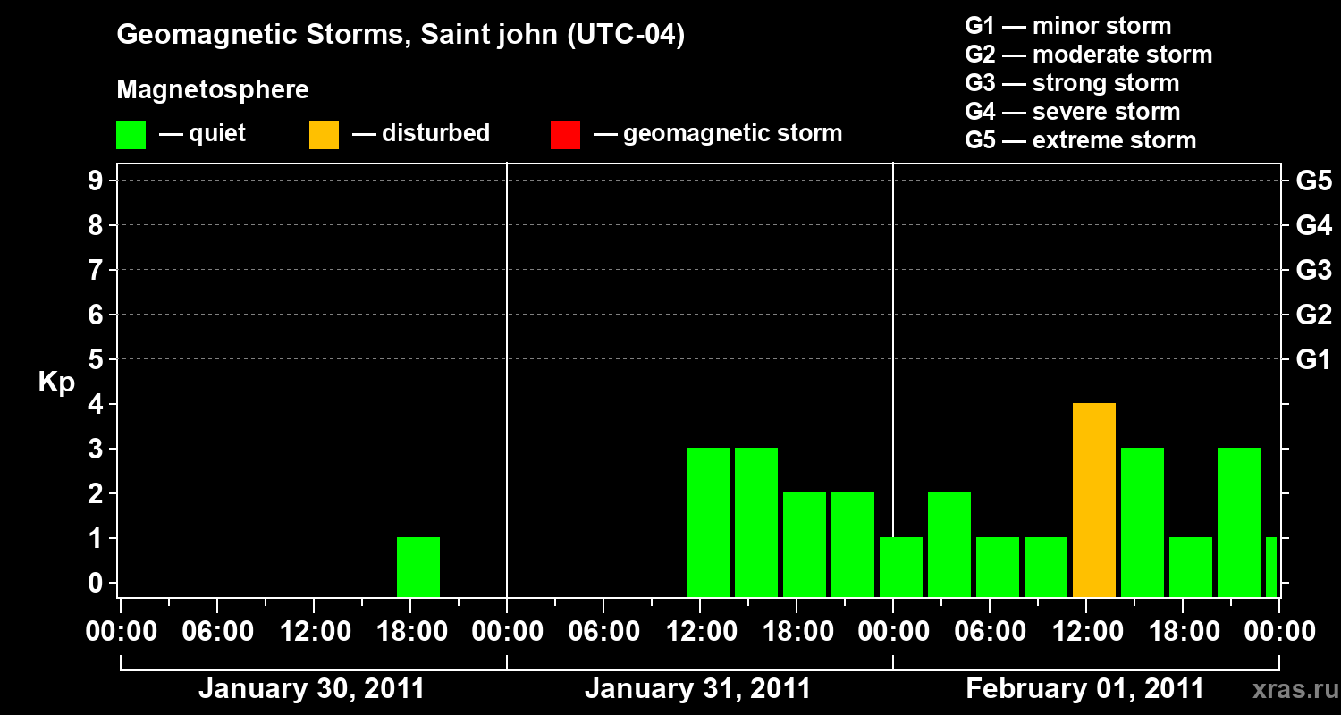 Geomagnetic storms in Saint john — Feb 01, 2011