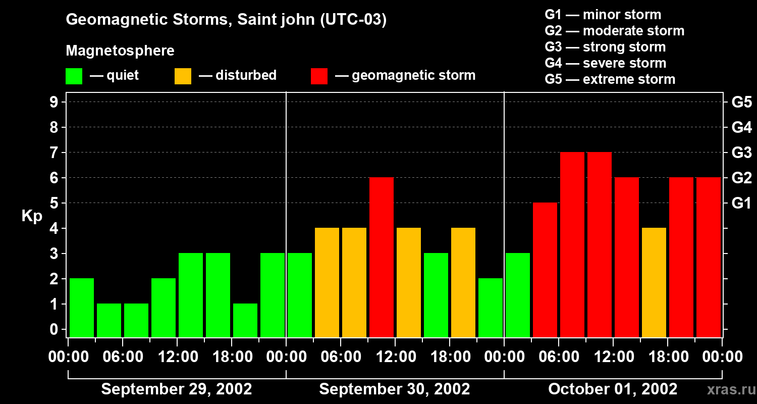 Geomagnetic storms in Saint john — Oct 01, 2002