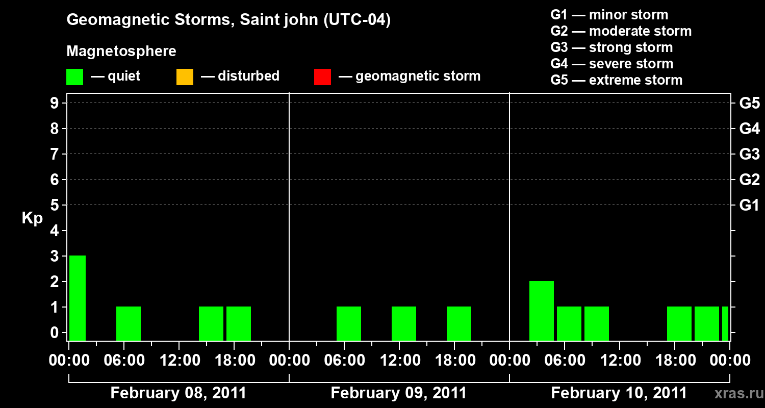 Geomagnetic storms in Saint john — Feb 10, 2011