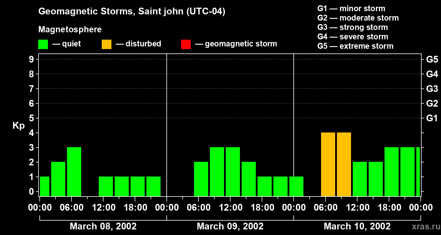 Geomagnetic storms in Saint john — Mar 10, 2002