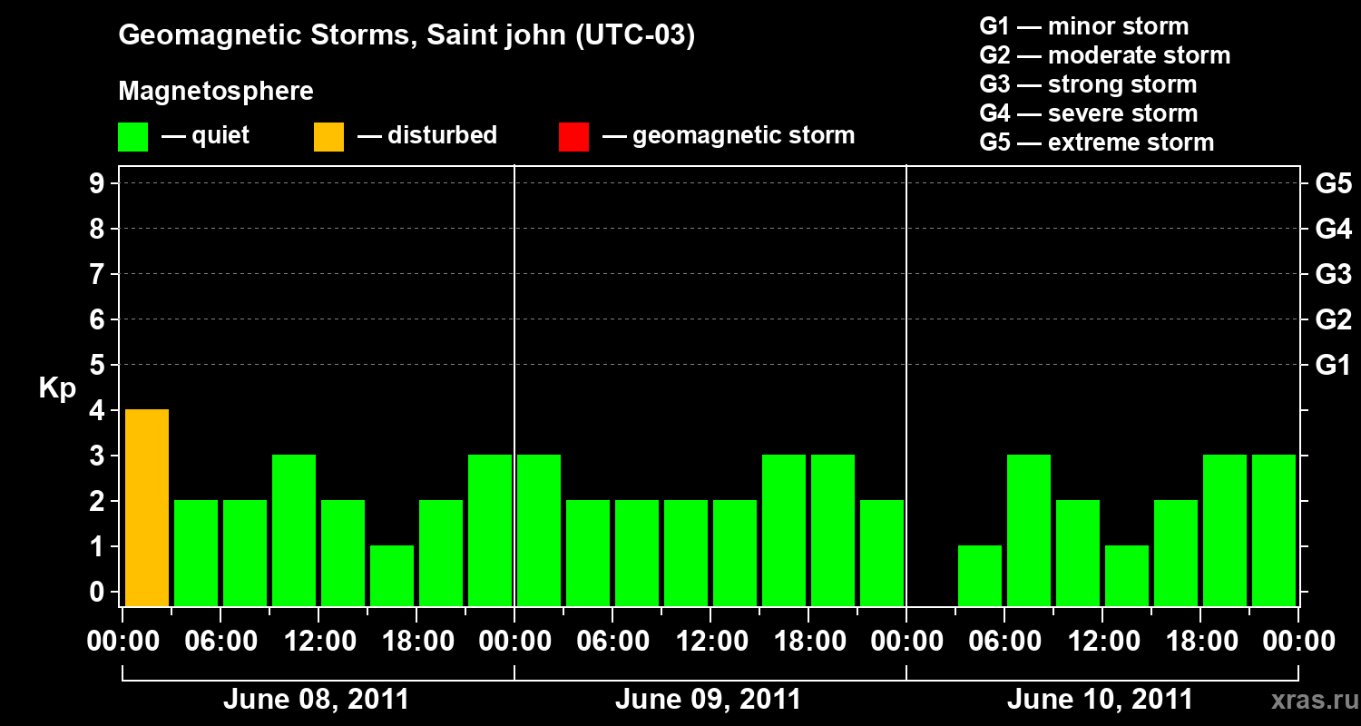 Geomagnetic storms in Saint john — Jun 10, 2011
