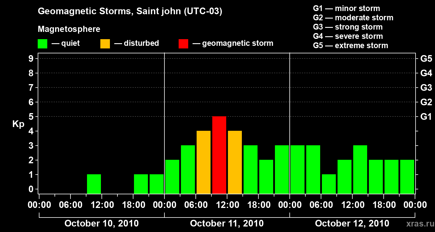 Geomagnetic storms in Saint john — Oct 12, 2010