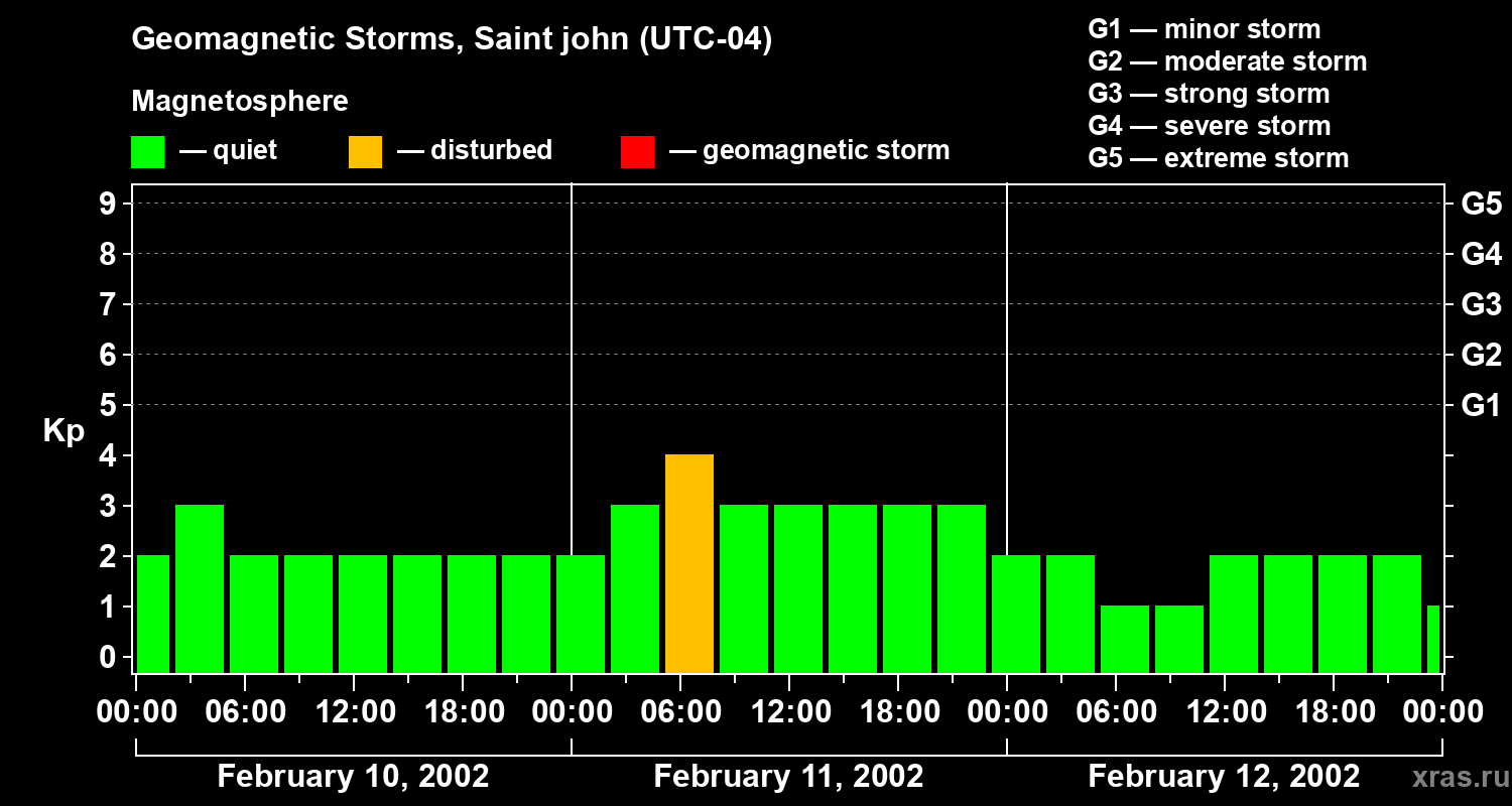 Geomagnetic storms in Saint john — Feb 12, 2002