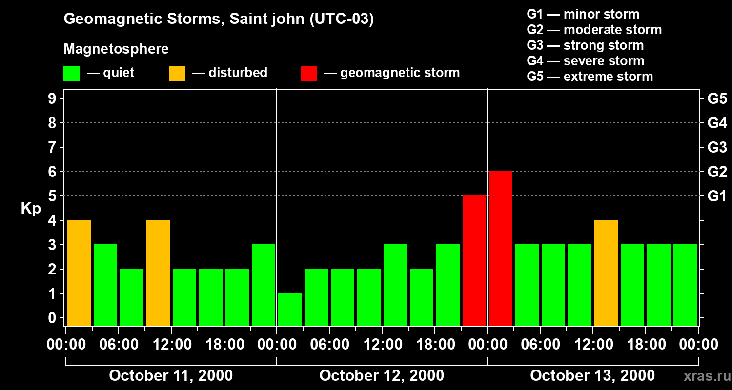 Geomagnetic storms in Saint john — Oct 13, 2000