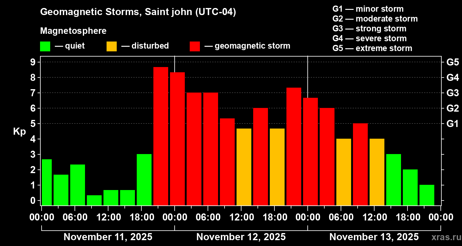 Geomagnetic storms in Saint john — Nov 13, 2025