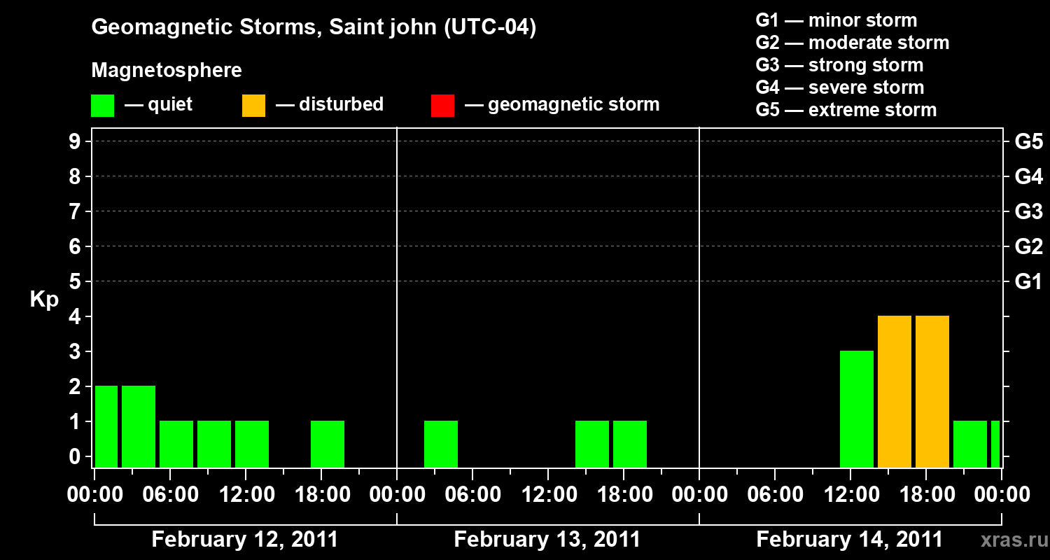 Geomagnetic storms in Saint john — Feb 14, 2011