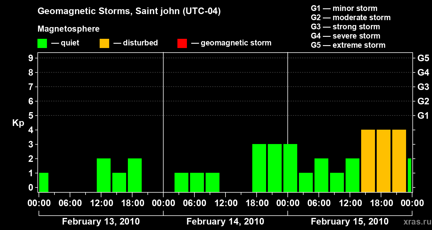 Geomagnetic storms in Saint john — Feb 15, 2010