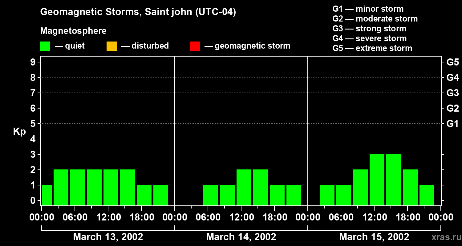 Geomagnetic storms in Saint john on Mar 15, 2002