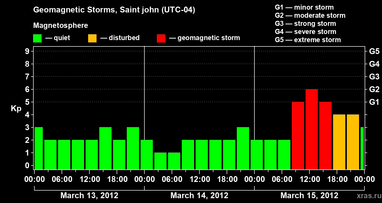 Geomagnetic storms in Saint john — Mar 15, 2012