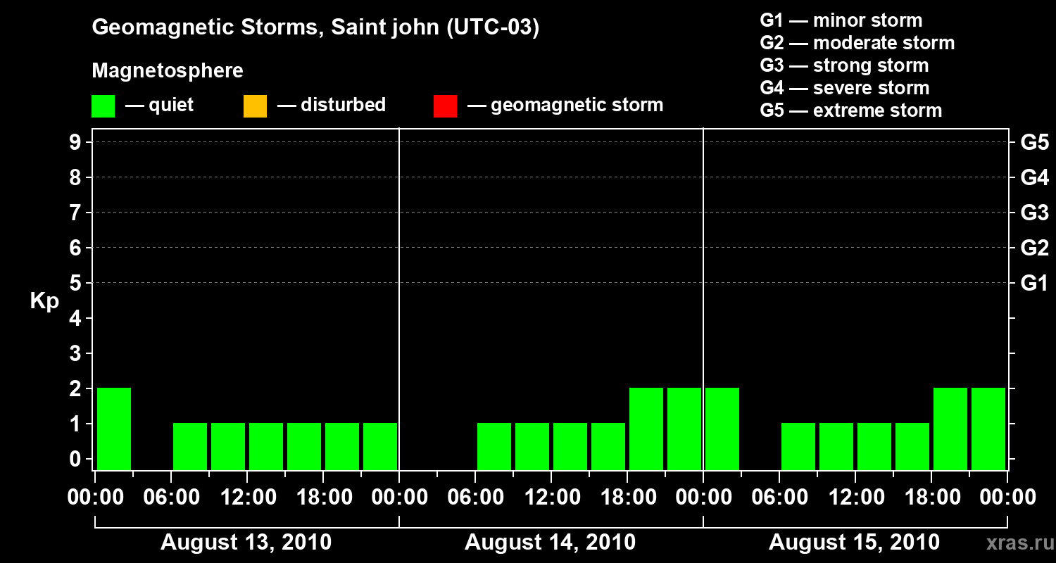 Geomagnetic storms in Saint john — Aug 15, 2010