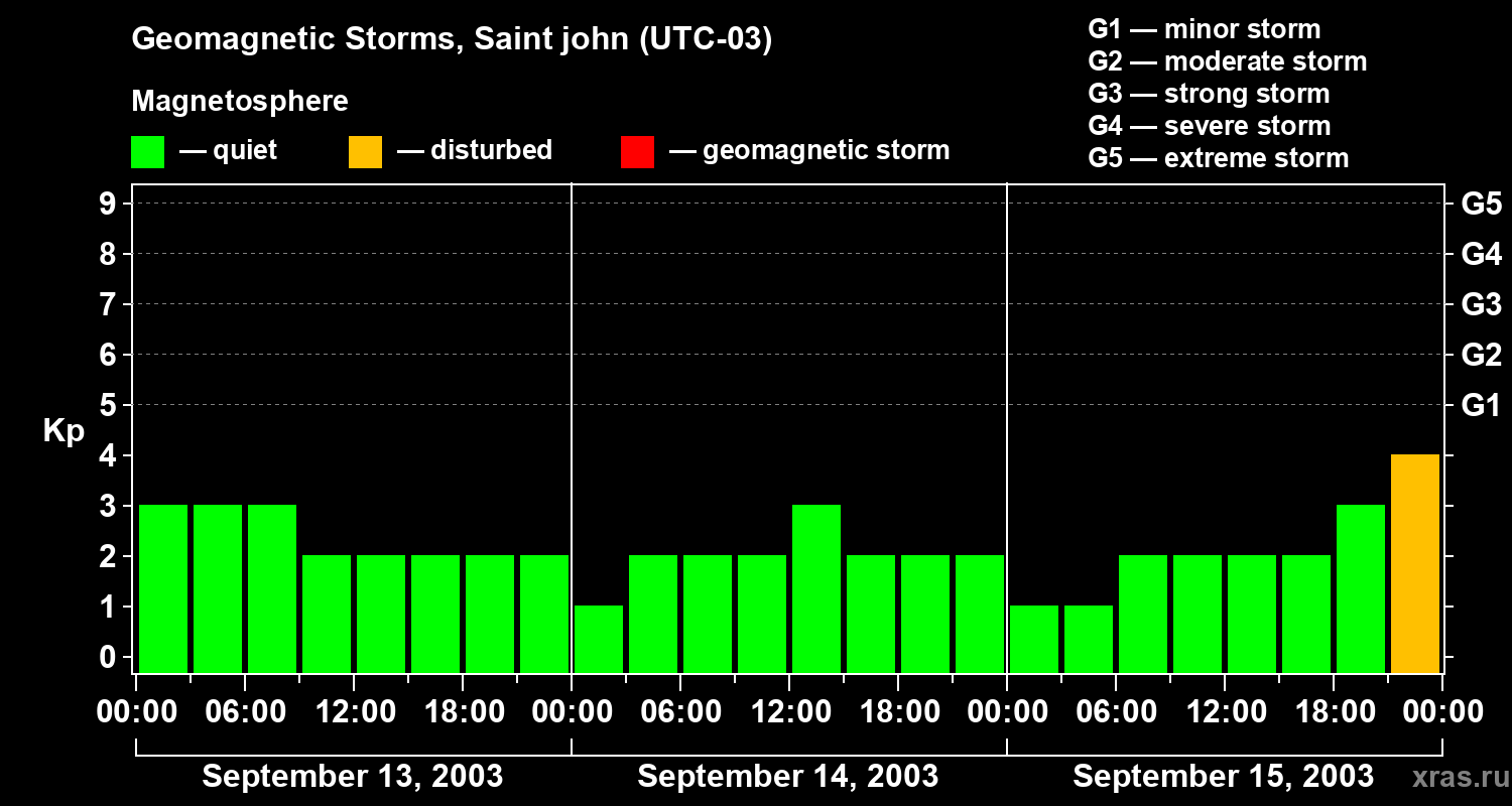 Geomagnetic storms in Saint john on Sep 15, 2003