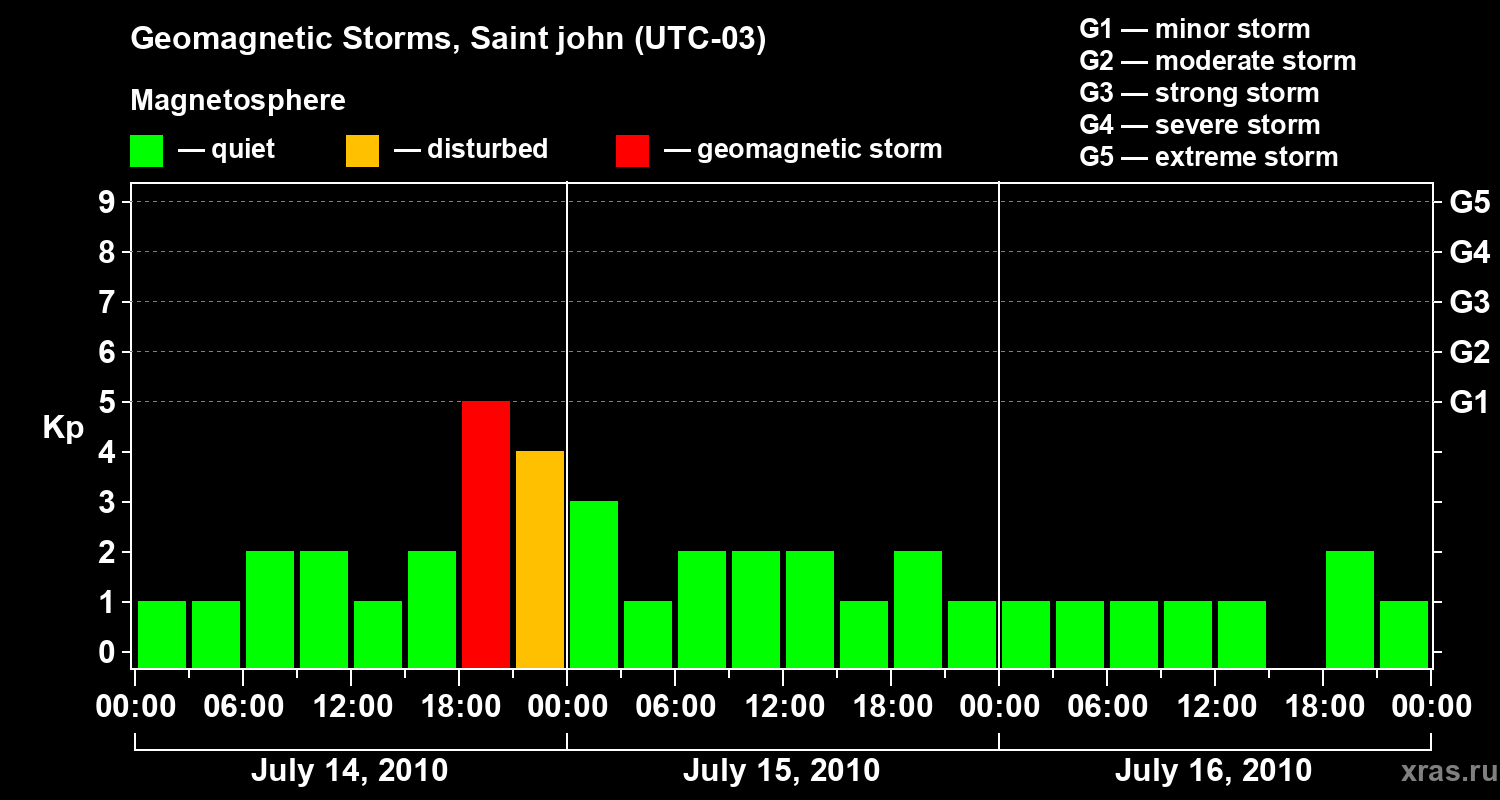 Geomagnetic storms in Saint john — Jul 16, 2010