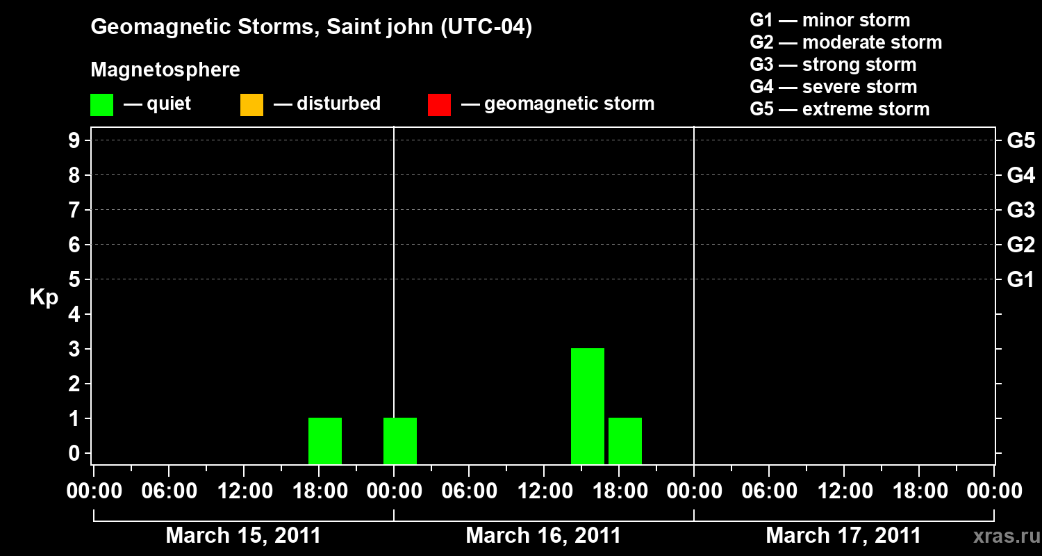 Geomagnetic storms in Saint john — Mar 17, 2011