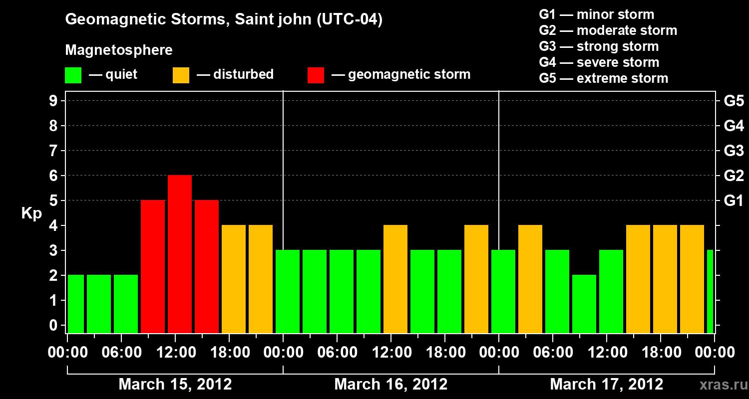 Geomagnetic storms in Saint john — Mar 17, 2012