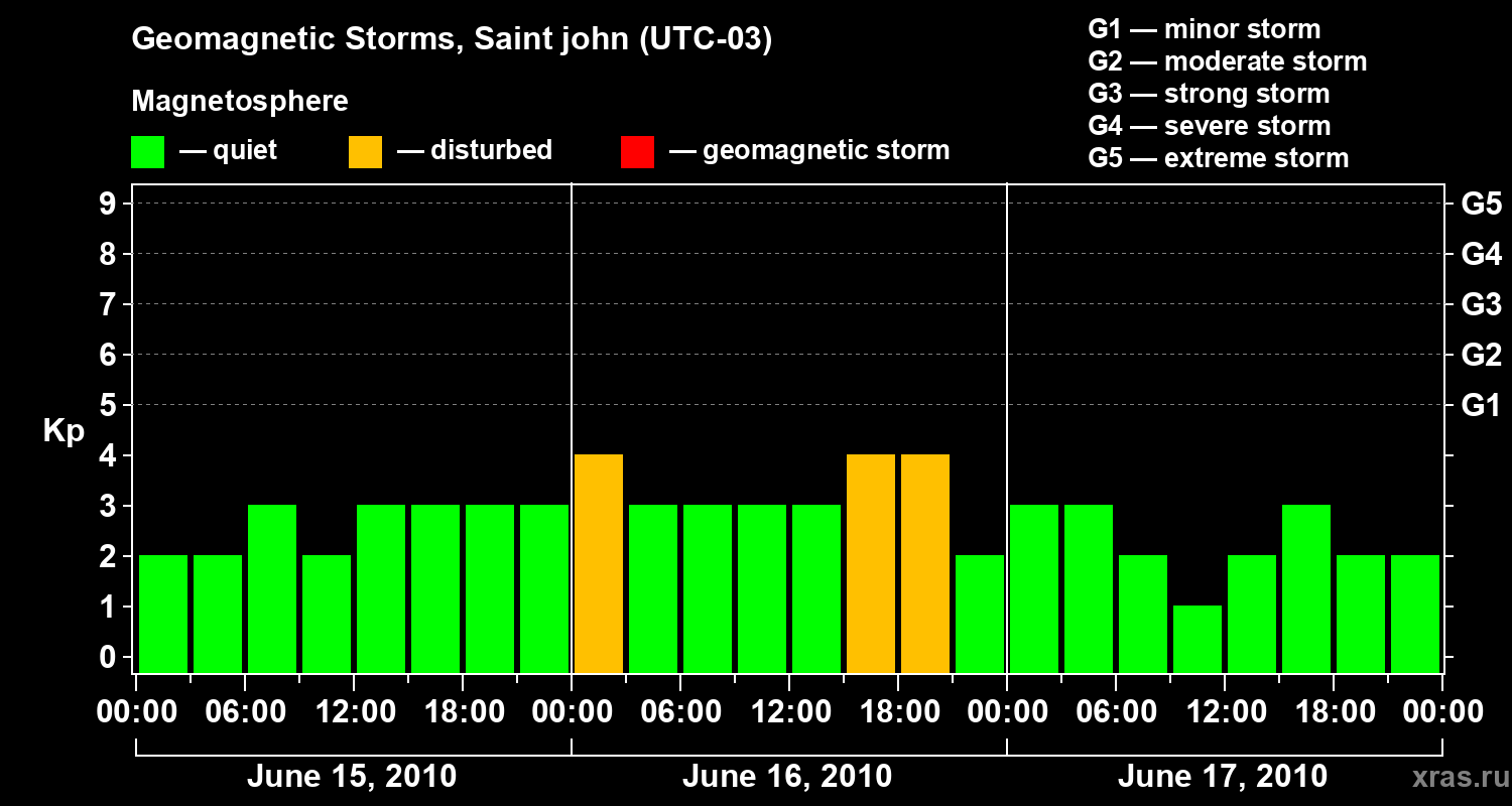 Geomagnetic storms in Saint john — Jun 17, 2010