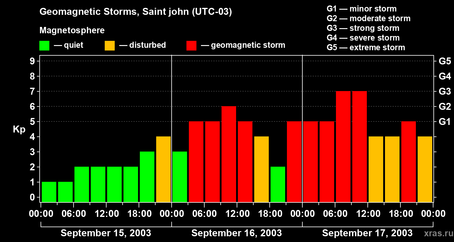 Geomagnetic storms in Saint john — Sep 17, 2003