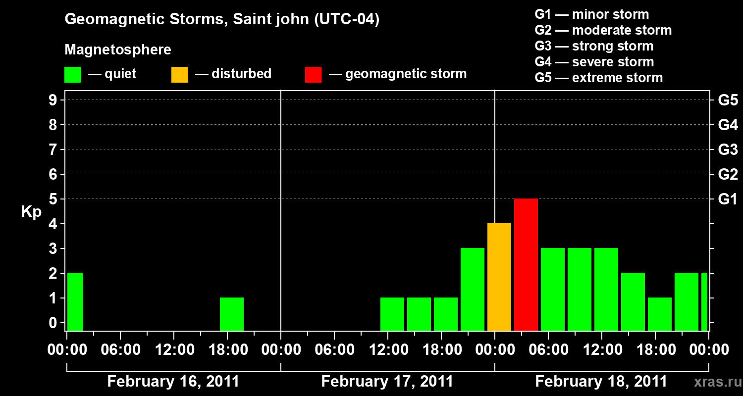 Geomagnetic storms in Saint john — Feb 18, 2011