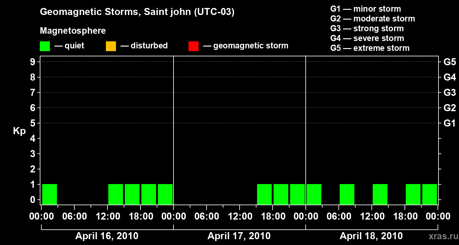 Geomagnetic storms in Saint john — Apr 18, 2010